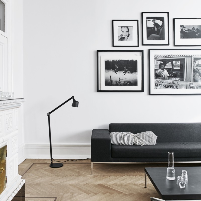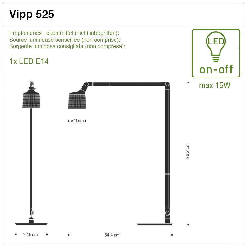 La lampe est soigneusement fabriquée à partir d’aluminium revêtu par poudre et d’acier. Elle a un abat-jour perforé et un diffuseur en verre pour une lumière agréable. La lampe sur pied Vipp 525 est une lampe intemporelle, tant au niveau de la conception qu’en matière de fonctionnalité.