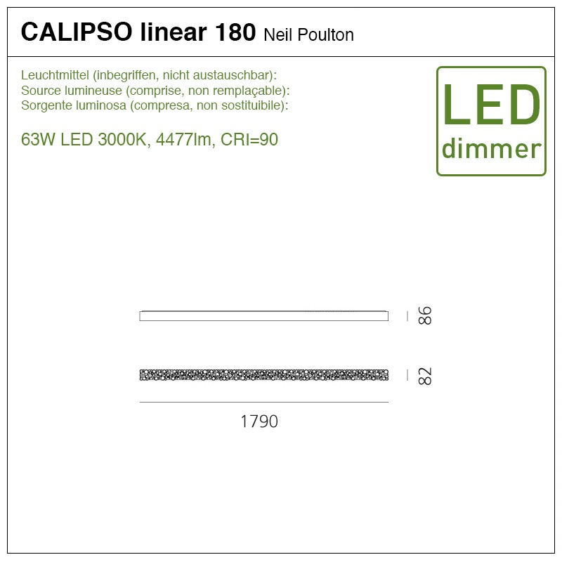 • Source lumineuse: 63W LED 3000K, 4477lm, CRI=90 (comprise, non remplaceable)