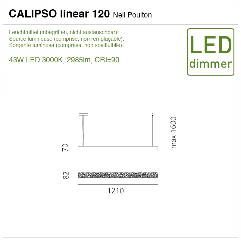 • Source lumineuse: 43W LED 3000K, 2985lm, CRI=90 (comprise, non remplaceable)