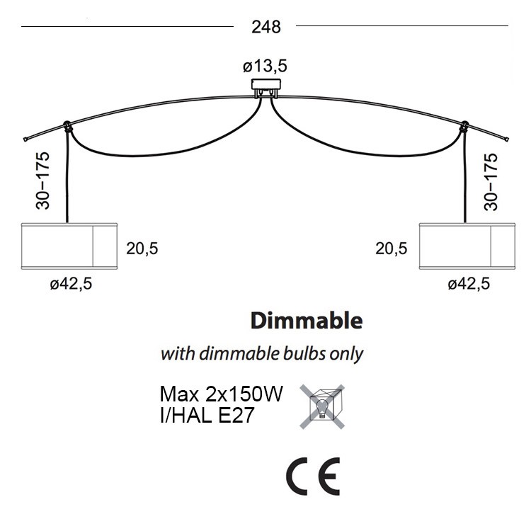 • Ampoule : Max 2x 150W halogène (excl.)