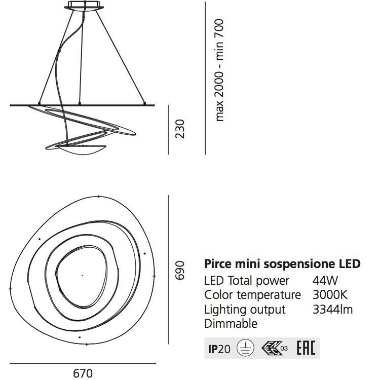 Artemide Pirce mini sospensione LED, Design Giuseppe Maurizio Scutellà.