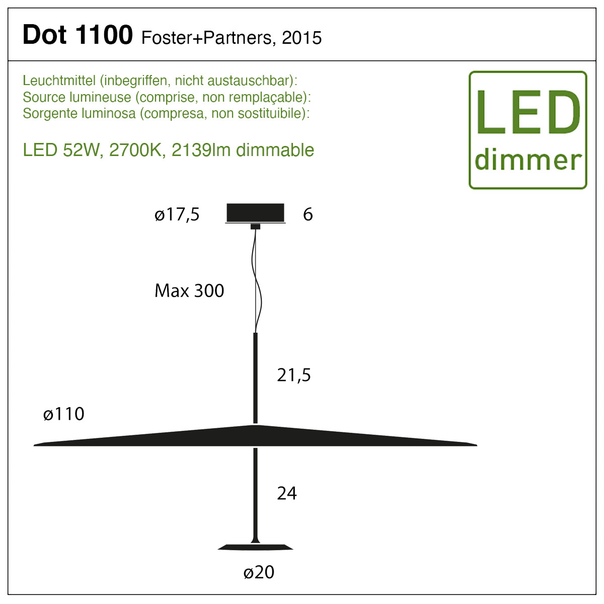 • Source lumineuse: LED 52W, 2700K, 2139lm dimmable (comprise, non échangeable), durée de vie >55’000h