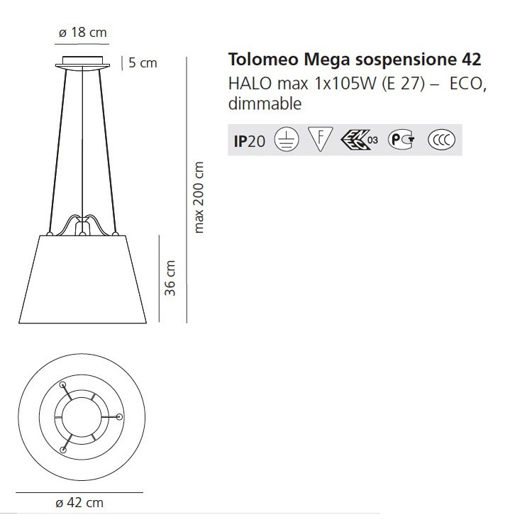 Source lumineuse: max 1x105W E27 halogen energy saver, dimmable.