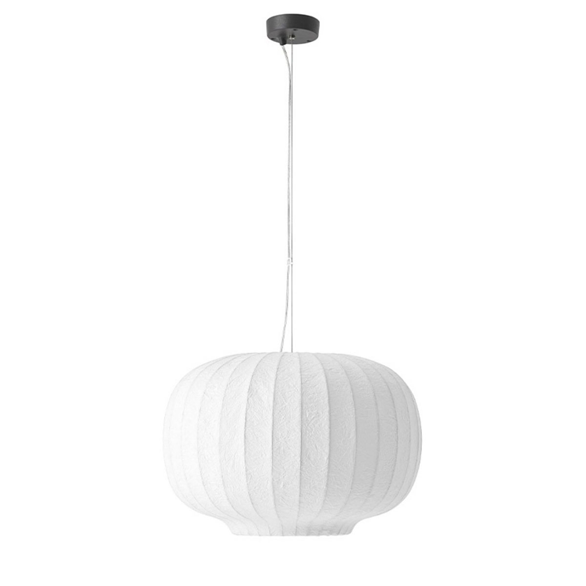 La suspension Paper de Vipp est soutenue par un câble réglable et un cordon transparent, idéal pour une utilisation au-dessus d’une table à manger.