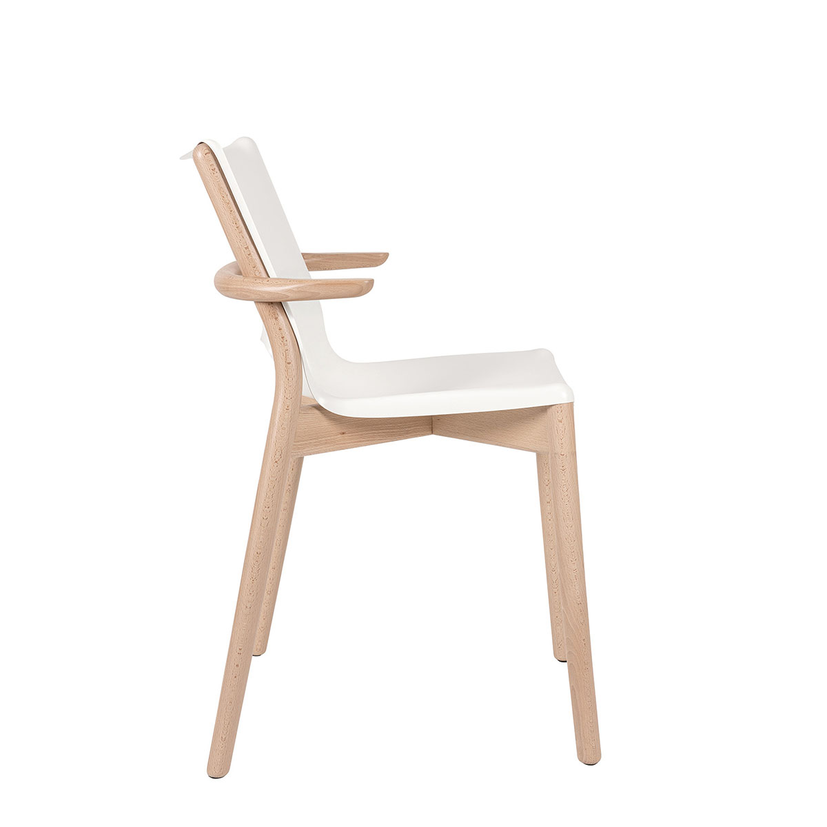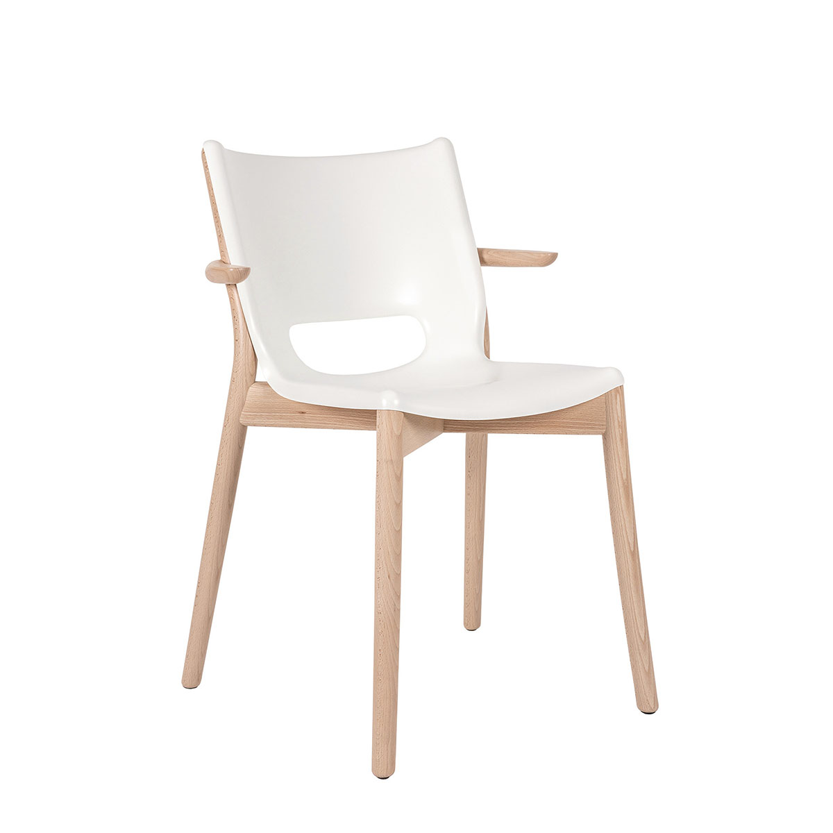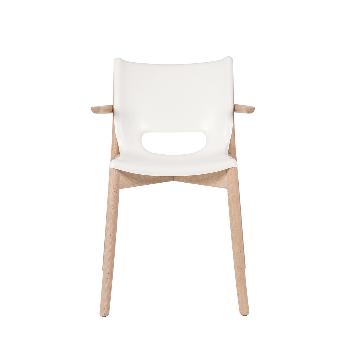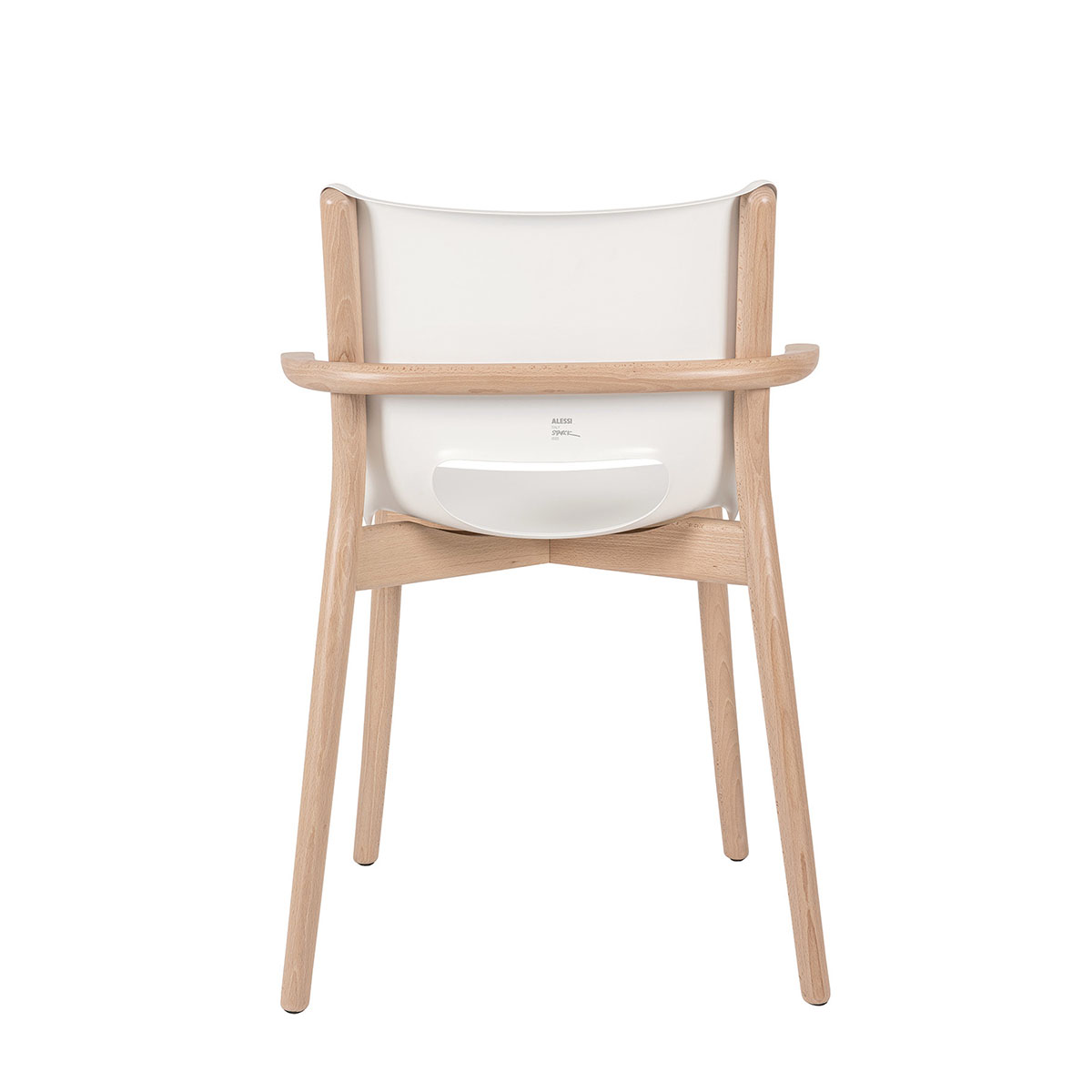 Chaise Poêle Chair avec accoudoirs PS20 W blanc et hêtre naturel – design Philippe Starck.