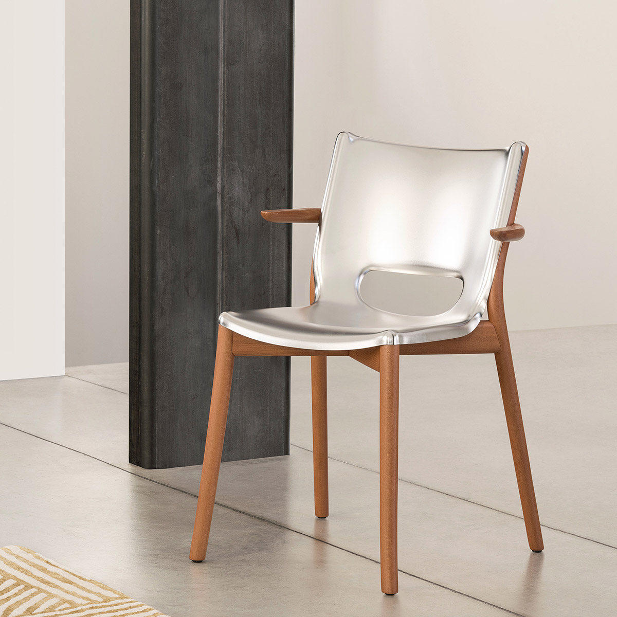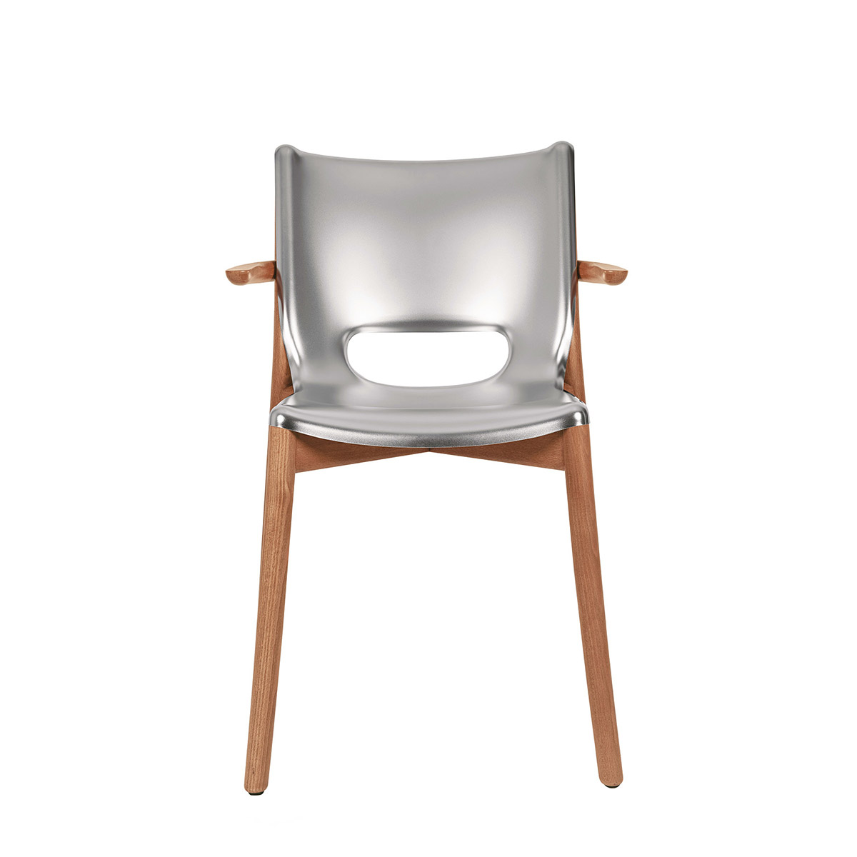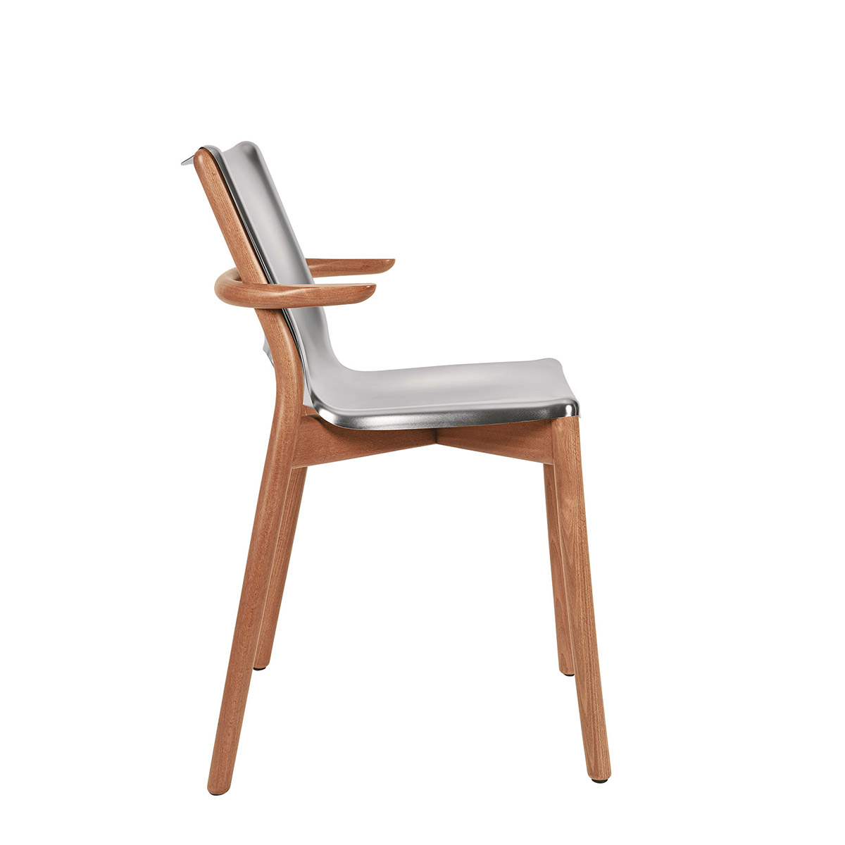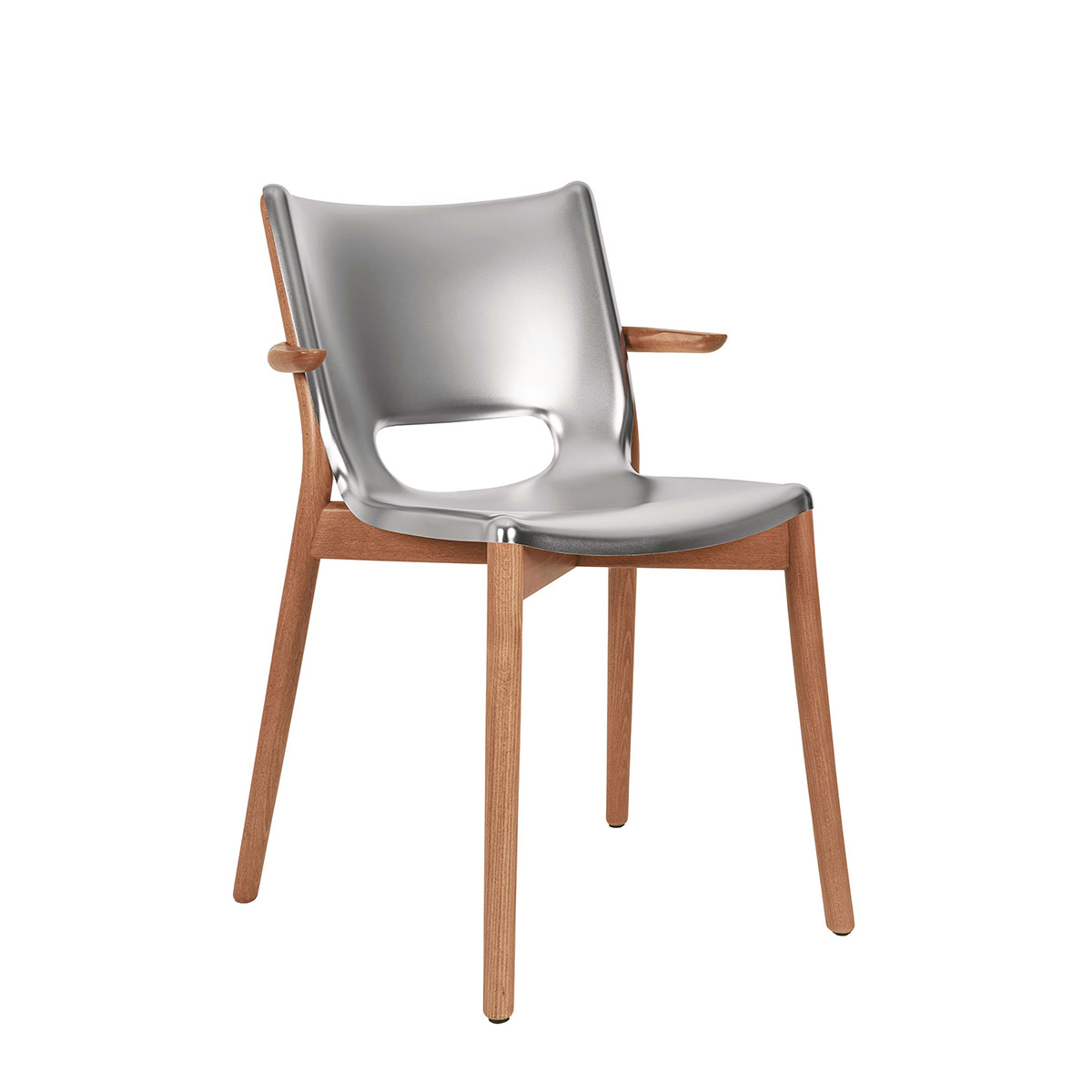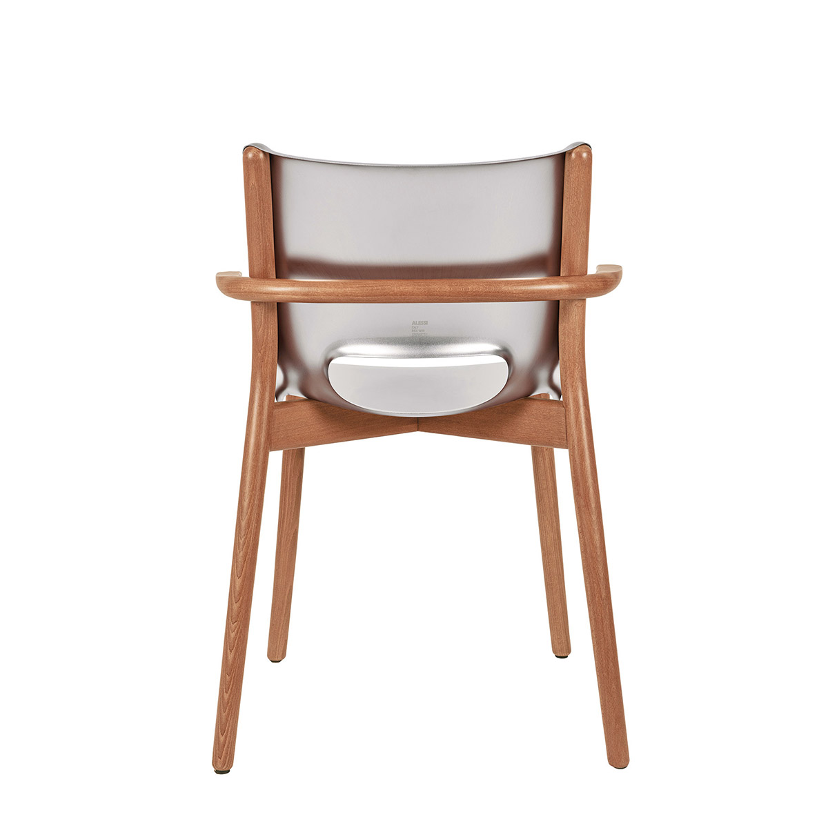 Chaise Poêle Chair avec accoudoirs PS20 S inox satiné et hêtre teinté brun – design Philippe Starck.