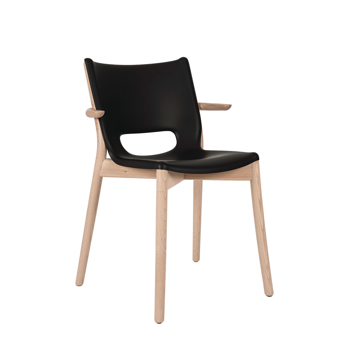 Chaise Poêle Chair avec accoudoirs noir et hêtre naturel PS20 B – design Philippe Starck.