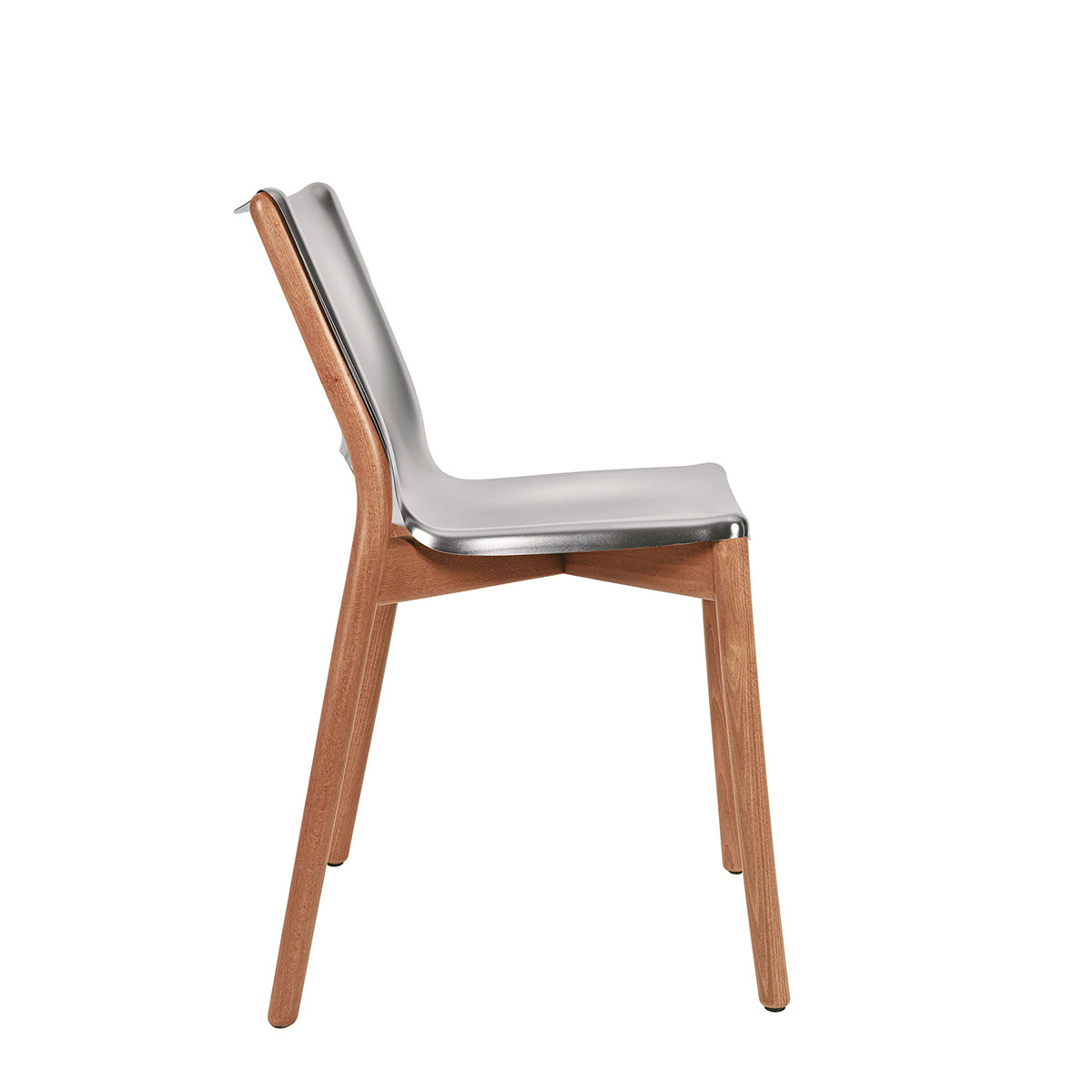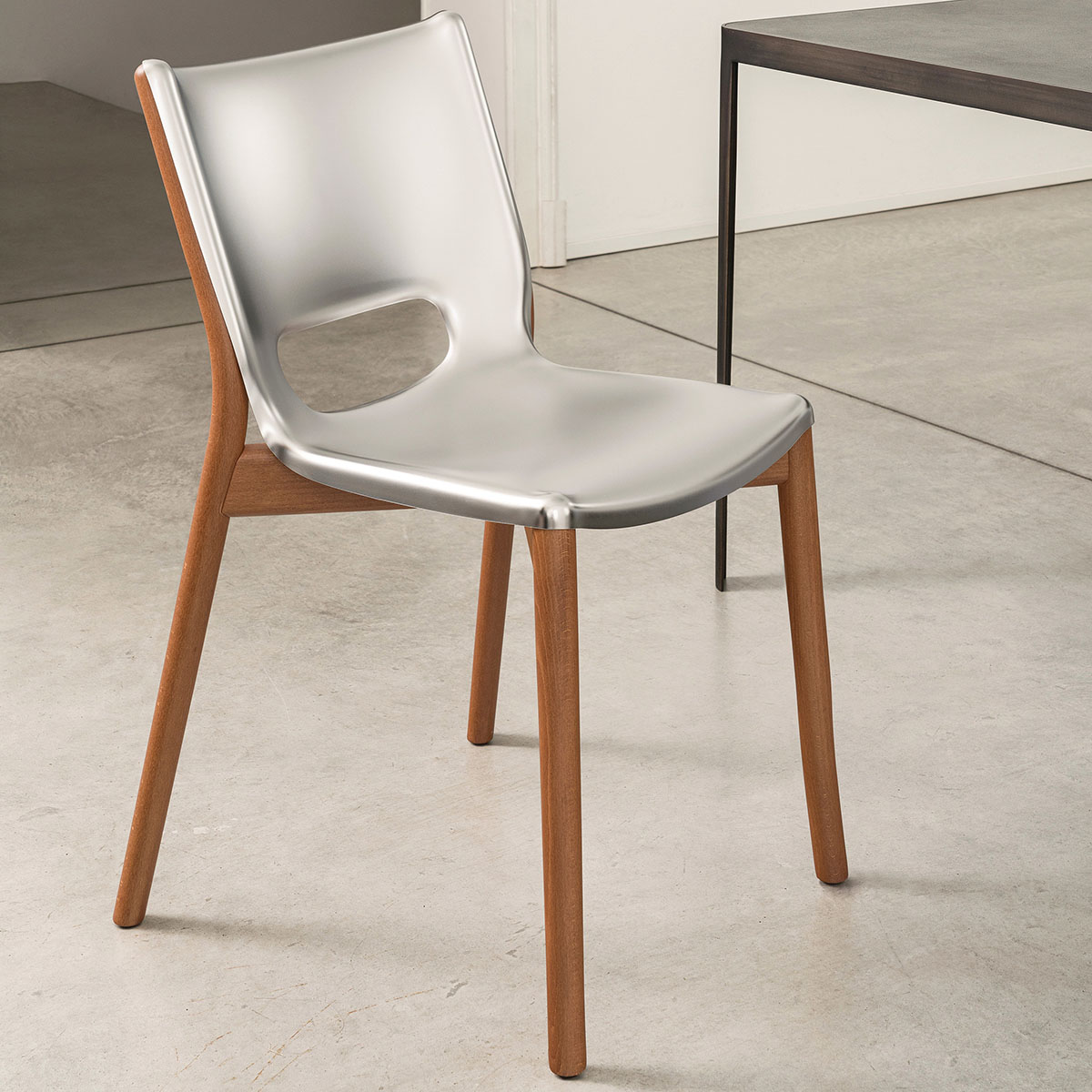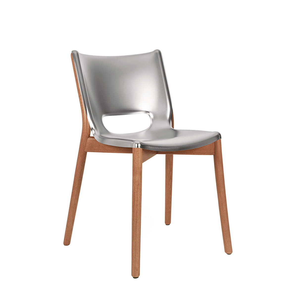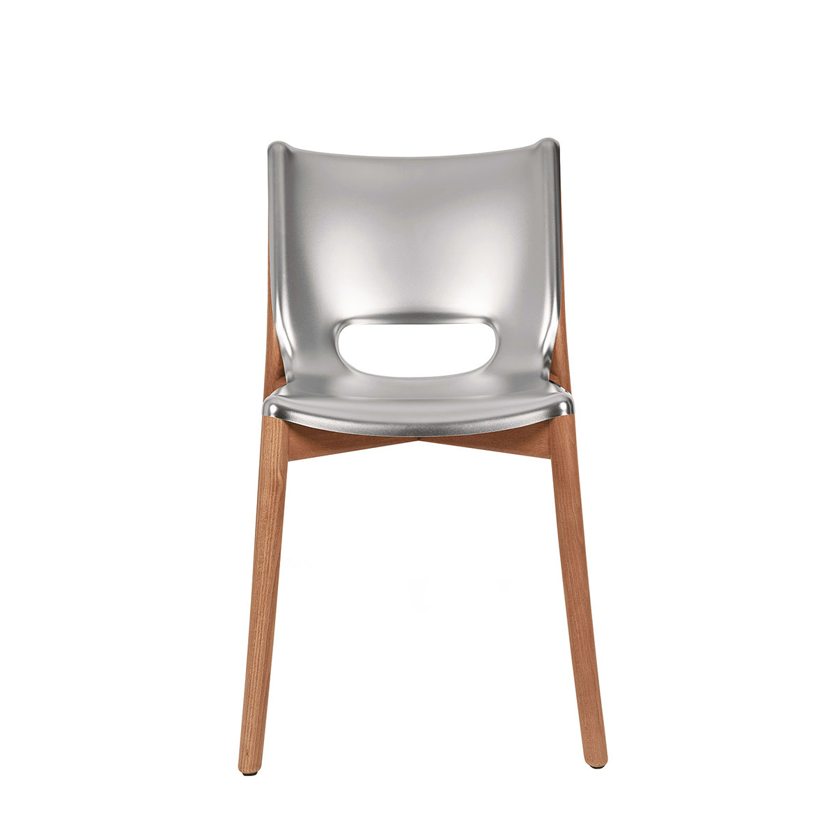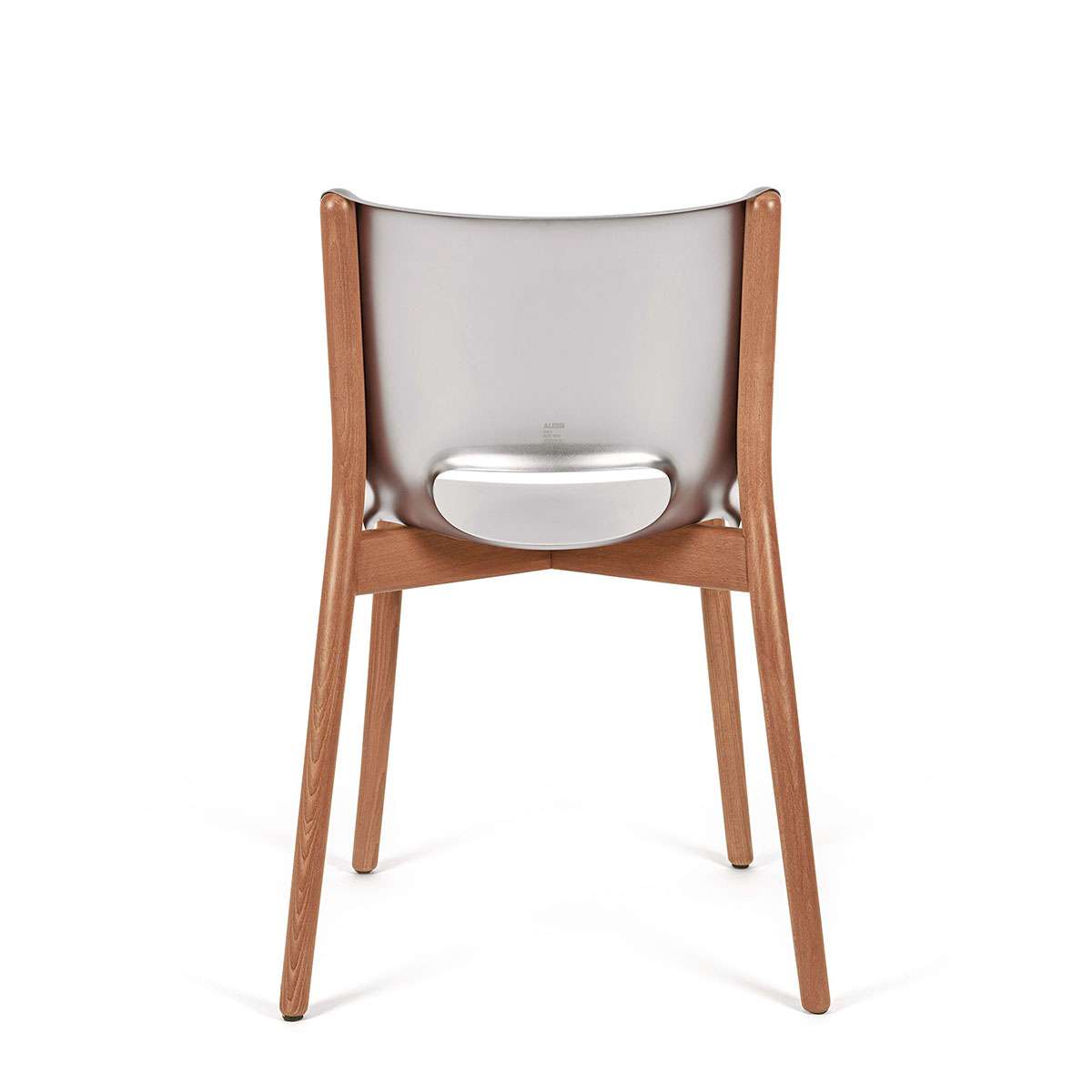Chaise Poêle Chair PS19 S inox satiné et hêtre teinté brun – design Philippe Starck.