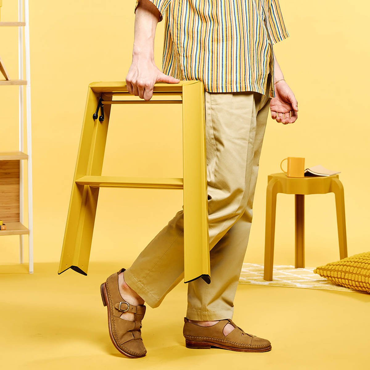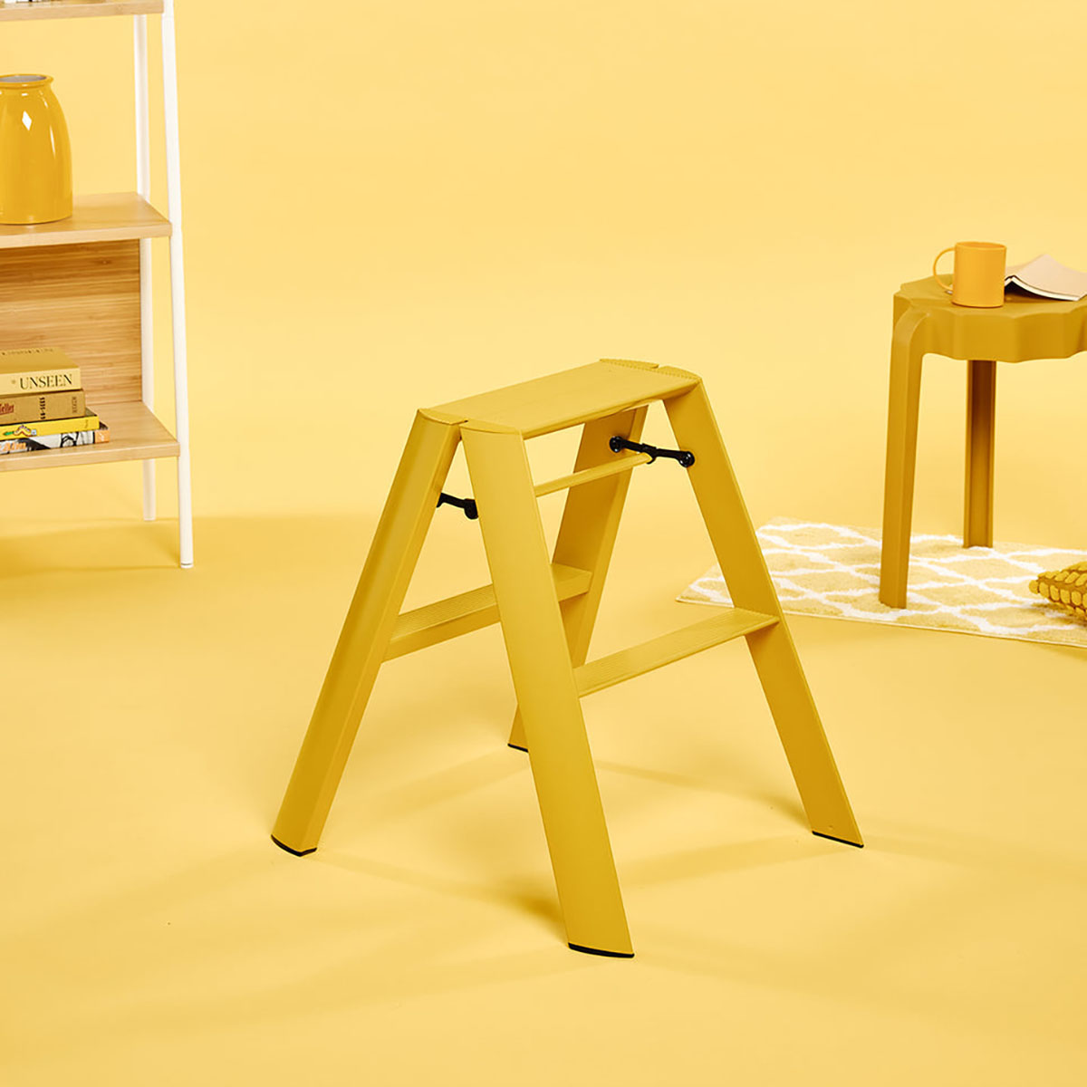 Lucano 2 step moutarde est un petit escabeau – tabouret pratique et léger.