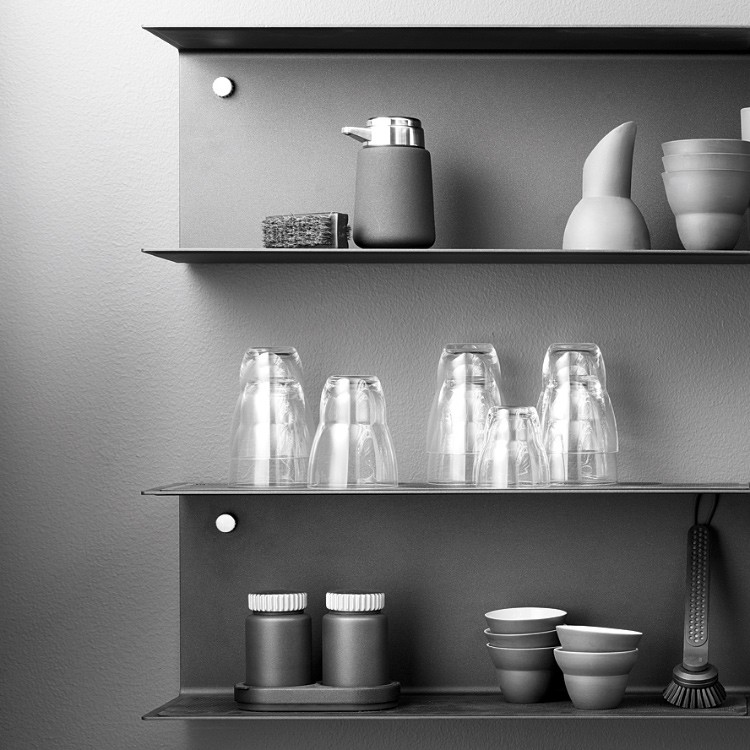L’étagère Vipp small est réalisée en aluminium massif de 3 mm d’épaisseur et plié en forme de U afin d’avoir deux surfaces horizontales.