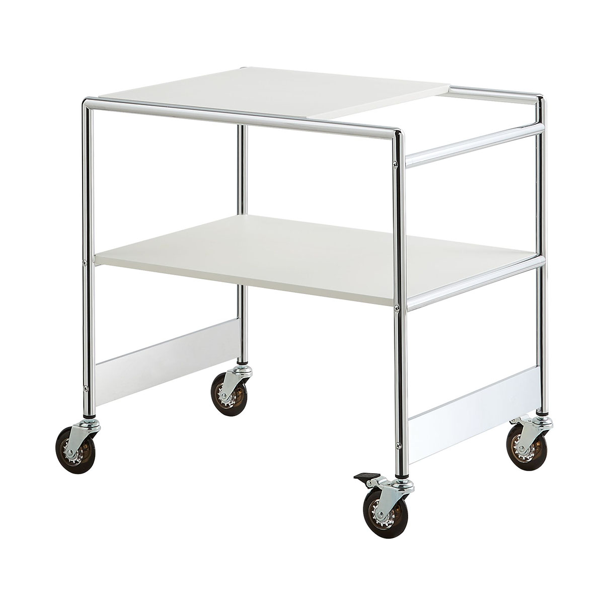 La desserte SIR est montée sur quatre roulettes de type inline de grande qualité. Deux des quatre roulettes sont équipées d’un frein. Le chariot SIR est à l’aise sur tout type de revêtement de sol et ne reste pas accroché aux tapis.
