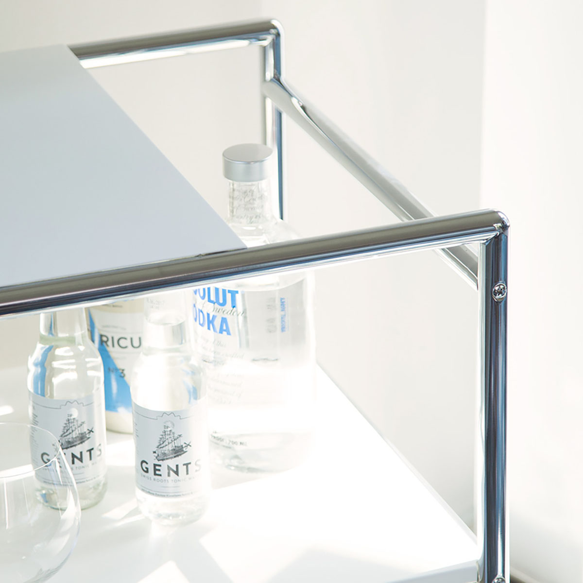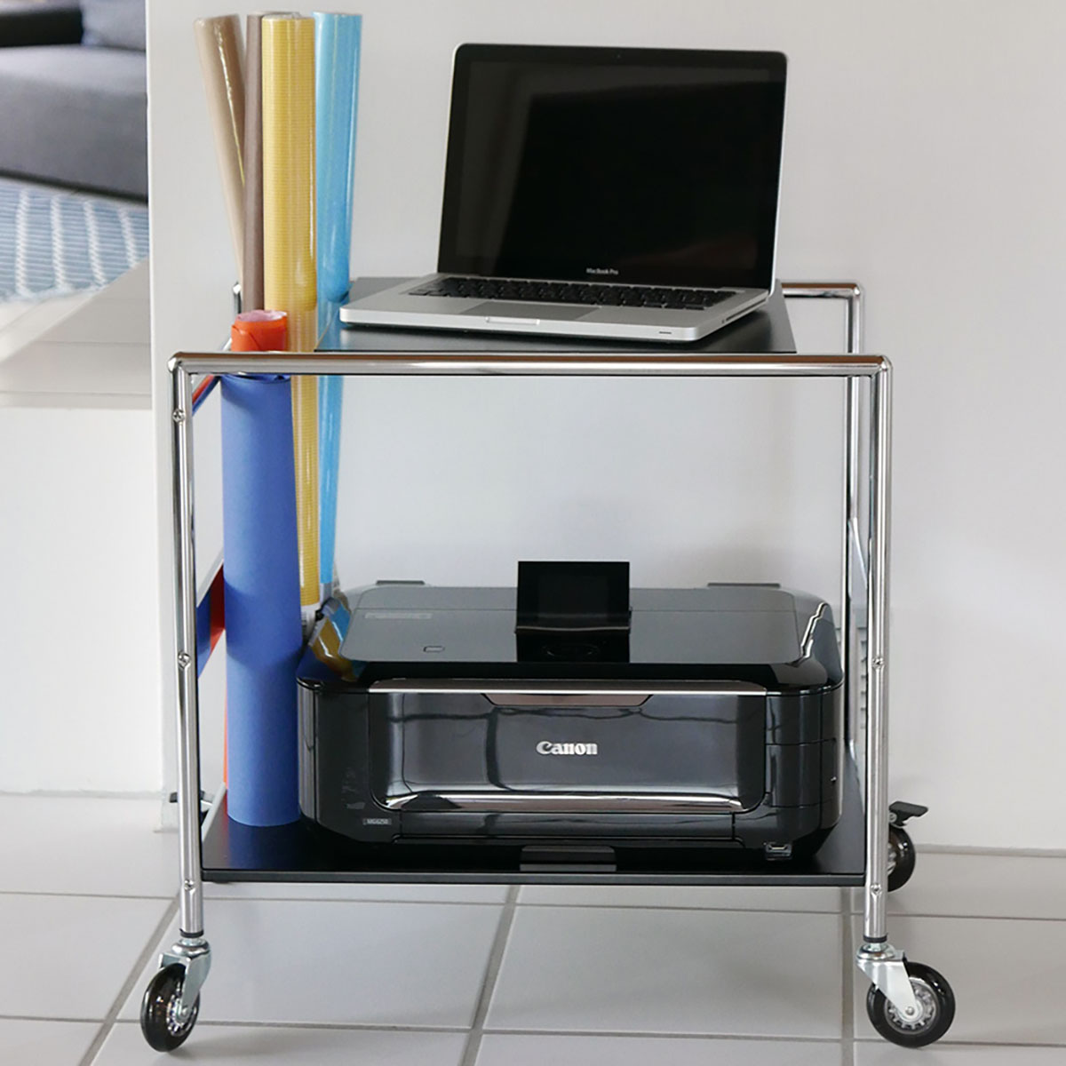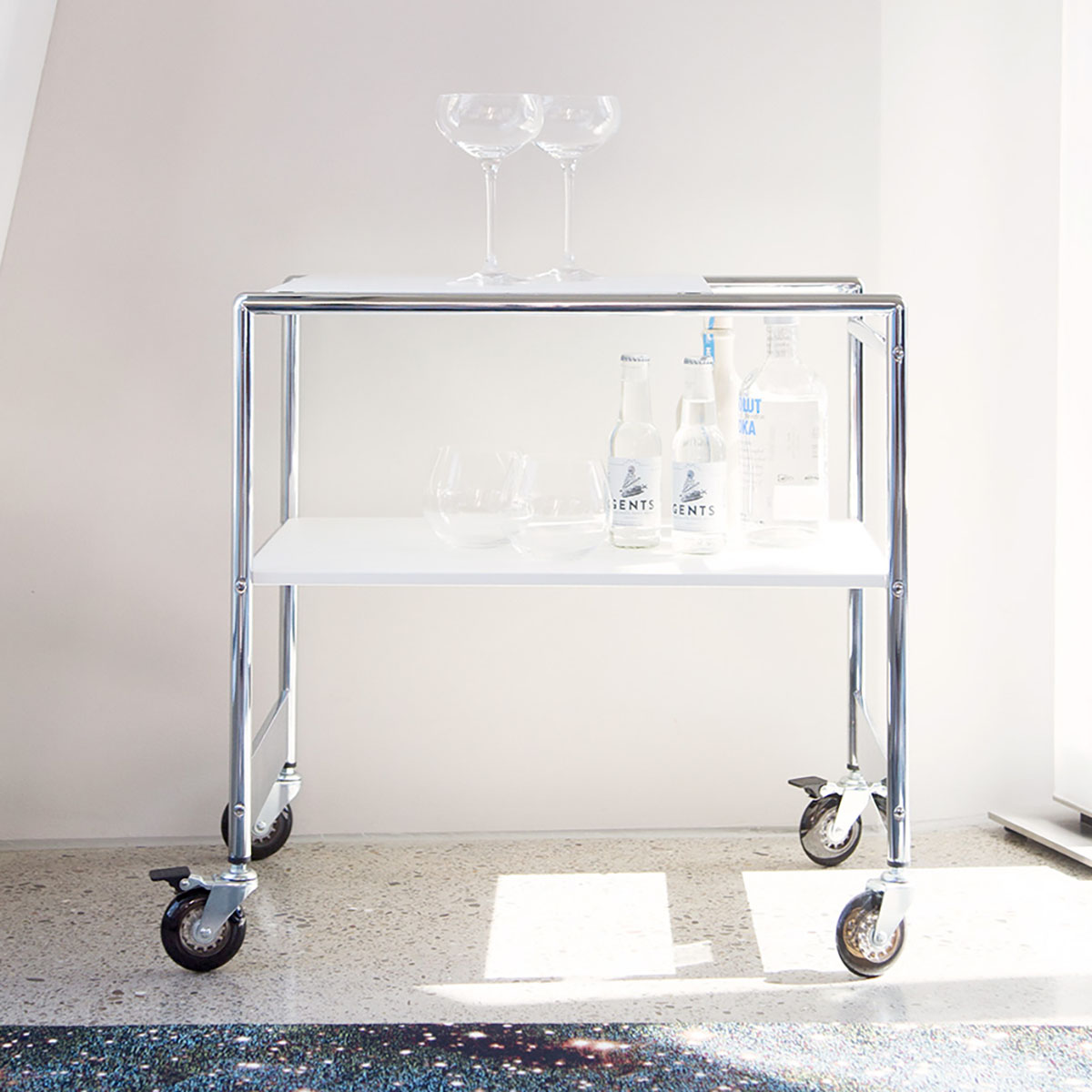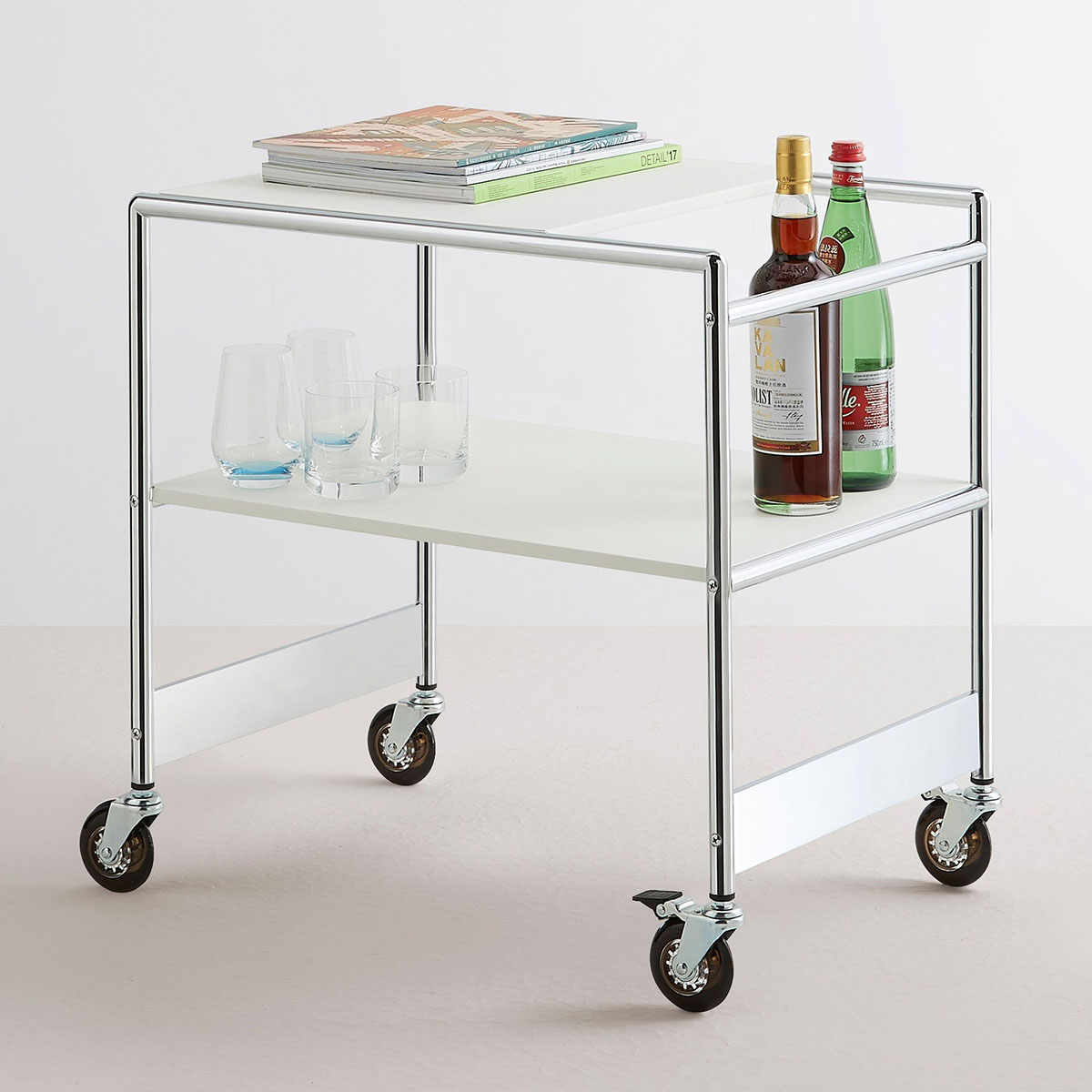 SIR est un meuble à roulettes compact, idéal pour le salon comme bar ou table d’appoint, dans le coin bureau comme support pour l’imprimante et les affaires de bureau ou dans la salle de bains pour les linges et les produits de toilette.