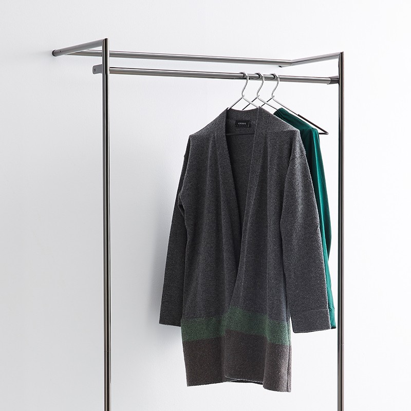 Grâce à sa structure filigrane, l’élégante penderie COMBA prend visuellement très peu de place dans la zone d’entrée ou ailleurs comme dans la chambre. Elle est simplement appuyée au mur sans besoin de percer des trous.