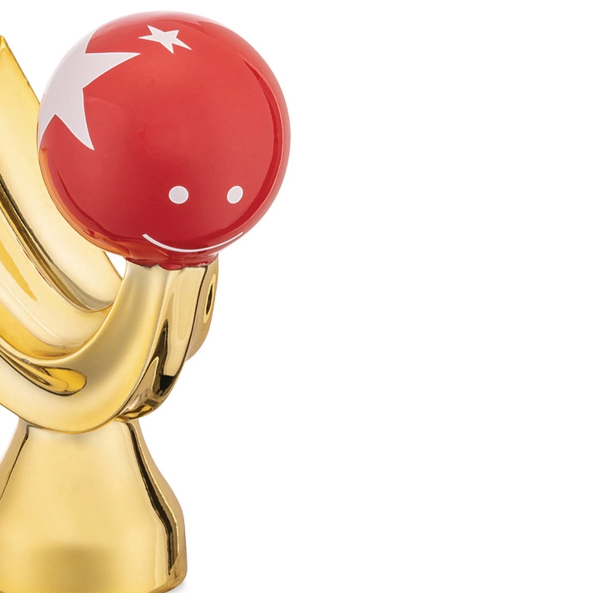L’objet décoratif est révolutionné dans sa forme traditionnelle et devient une sphère rouge avec une queue qui célèbre le mouvement du corps céleste.