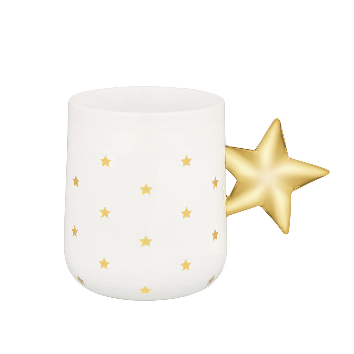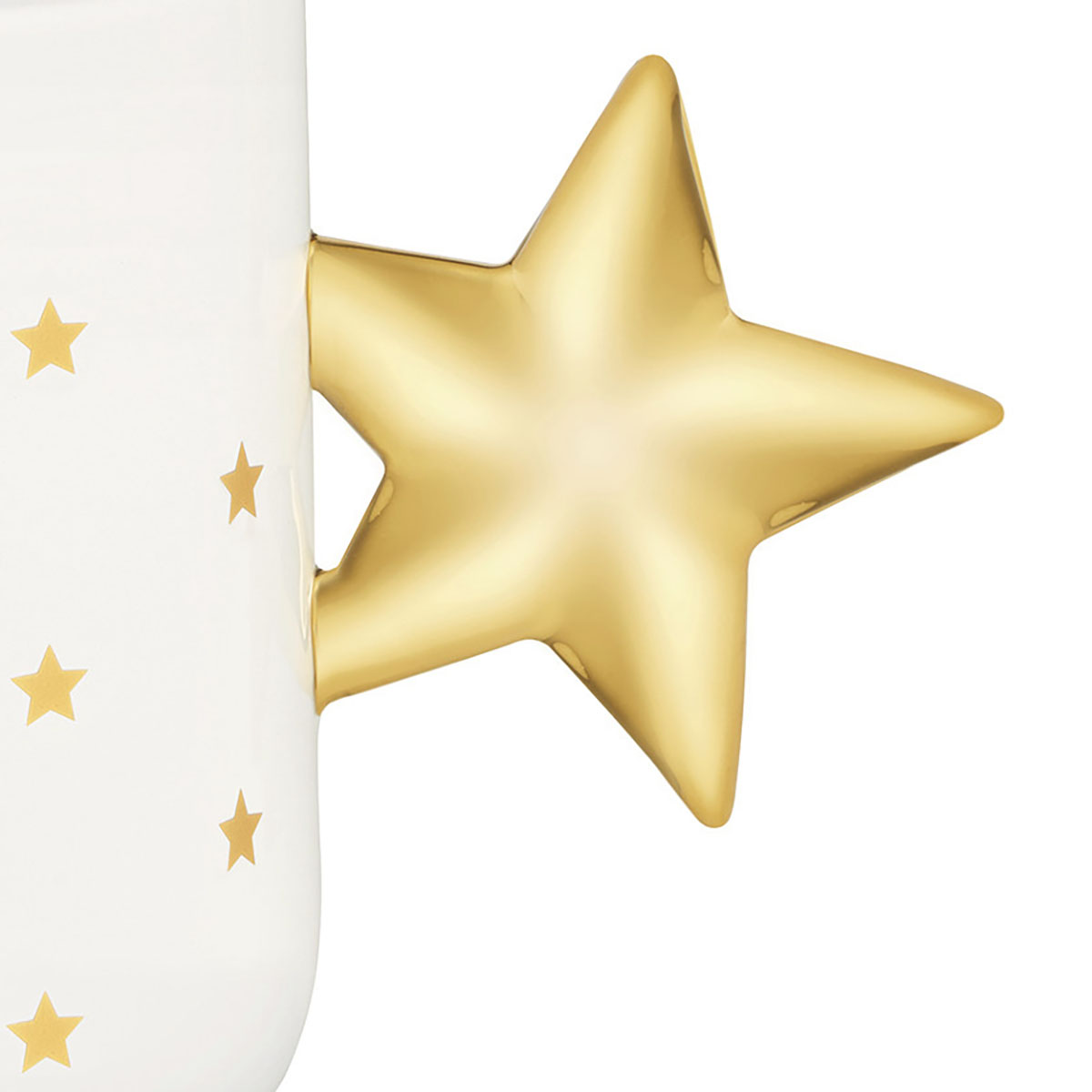 L’étoile de Noël, symbolisant la promesse de lumière, de paix et d’espoir, se traduit par un élément pop qui constitue l’anse et orne cette tasse blanche. Un objet qui raconte une histoire avec un simple symbole et qui invite le spectateur à une petite rêverie.