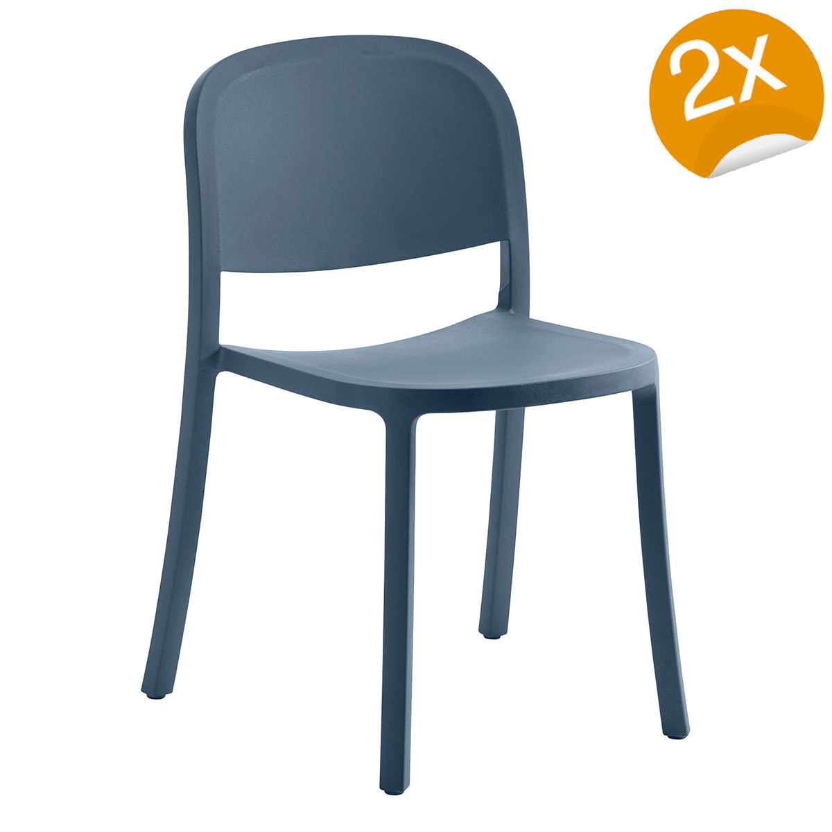 Chaise empilable Emeco 1 Inch Reclaimed Chair blue, set de 2 pièces, Design Jasper Morrison.